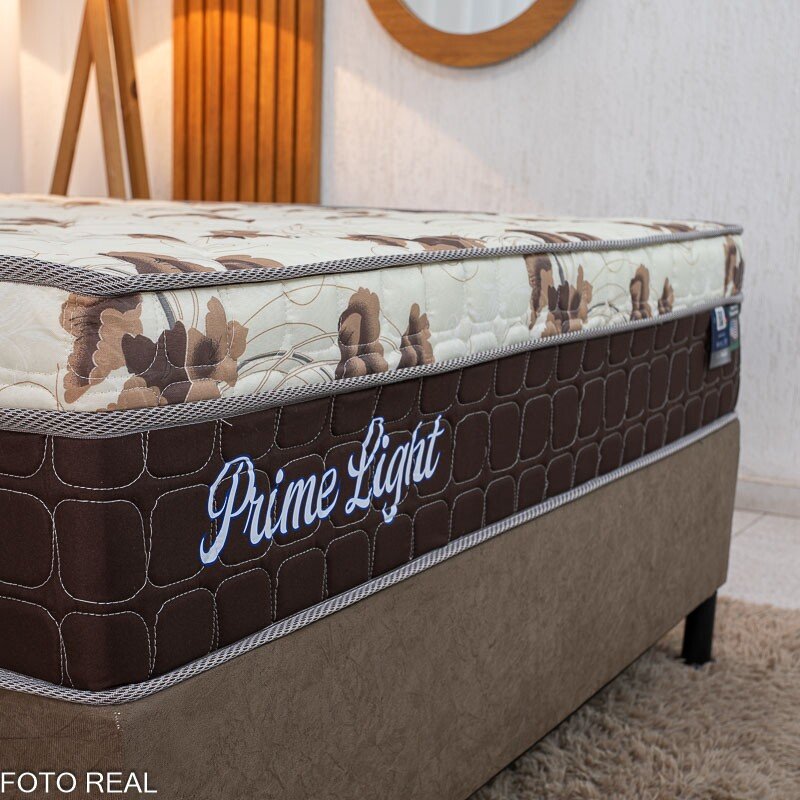 3{%%}Descrição{%%}Box Casal Sued Marrom Nosso Sonho + Colchão Casal Prime Light Marrom 138x188x67 Molas Ensacadas Orthoprime | Suporta até 240kg