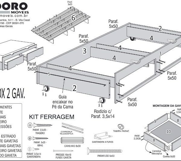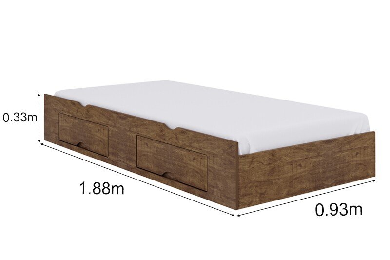 3{%%}Descrição{%%}Cama Auxiliar Solteiro 2 Gavetas Ypê 93x188x33 – D Doro