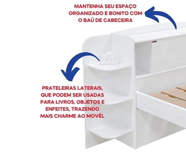 3{%%}Descrição{%%}Cama Solteiro Milênio Branca Cabeceira C/ Baú – D Doro