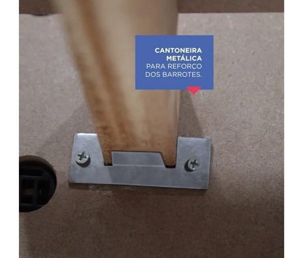 – Cantoneiras metálicas para reforço dos travessões.