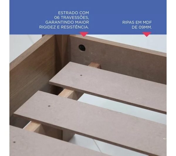 – Estrado com 06 travessões, garantindo maior rigidez e resistência.