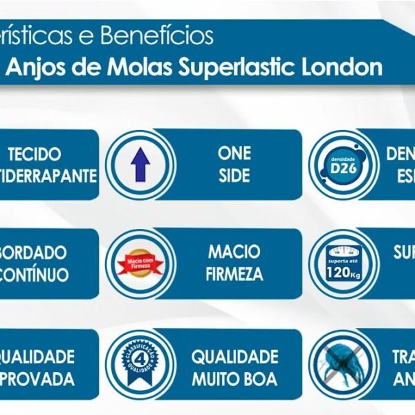 3{%%}Descrição{%%}Colchão Solteiro London Molas Superlastic 188x88x26 Anjos