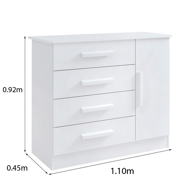3{%%}Descrição{%%}Cômoda Firenze Branco 4 Gavetas e Sapateira Larg. 1.10m – D Doro
