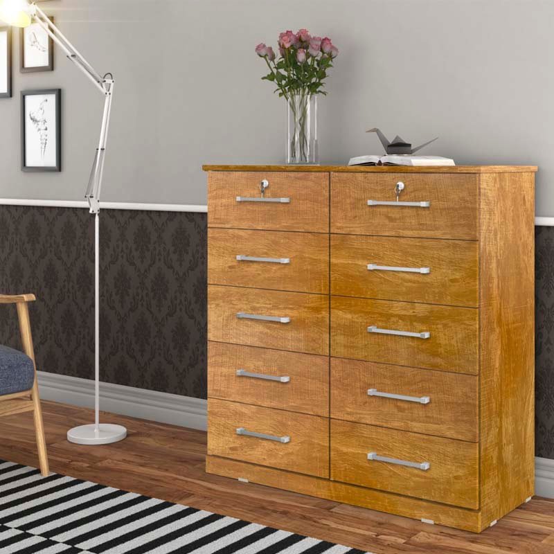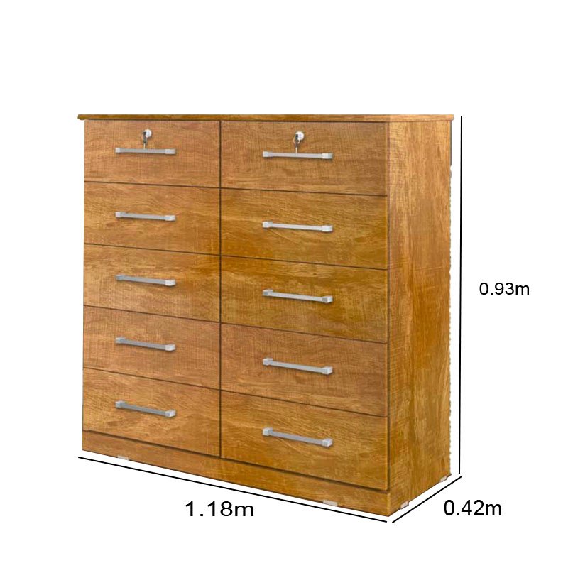 3{%%}Descrição{%%}Cômoda Vane 006 Cinamomo 10 Gavetas Larg. 1.18m – JL Móveis