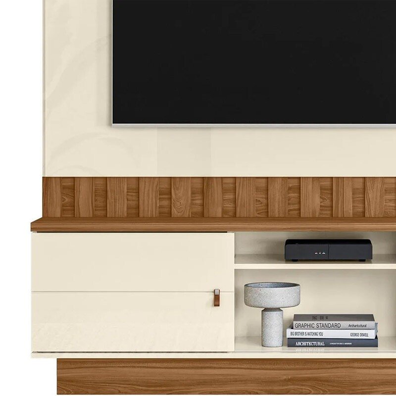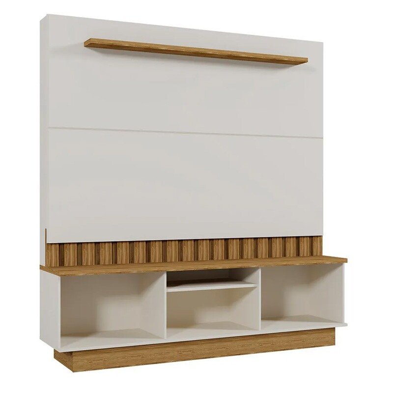 3{%%}Descrição{%%}Home Florianópolis Larg.1.75m Off/Amêndoa C/ Detalhe Ripado para TV até 70″ – Mobler