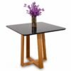 Mesa de Jantar Pedro 120×80 Vidro Preto/Base Madeira Art Assento – Entregue Montada
