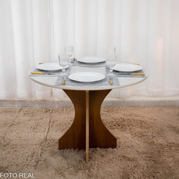 3{%%}Descrição{%%}Mesa de Jantar Siena Redonda 100cm Cinamomo/Vidro Off – Minas Plac