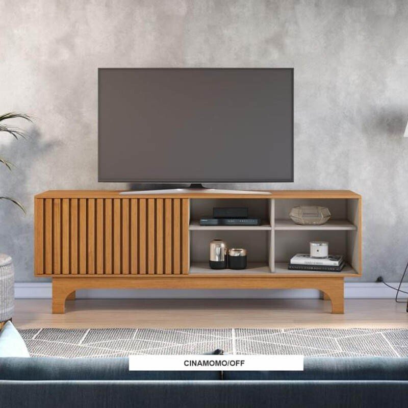 3{%%}Descrição{%%}Rack Sereno Larg. 1.68m Cinamomo/Off C/Porta Ripada para TV até 70″ – JCM