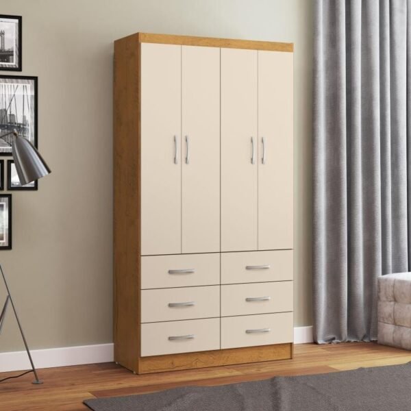 3{%%}Descrição{%%}Roupeiro Nápoles Larg. 0.93m Noce TX/Pérola 4 Portas 6 Gavetas – San Marino