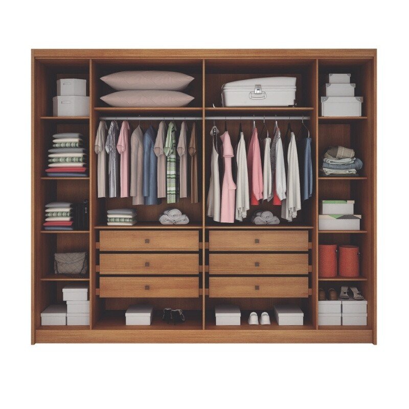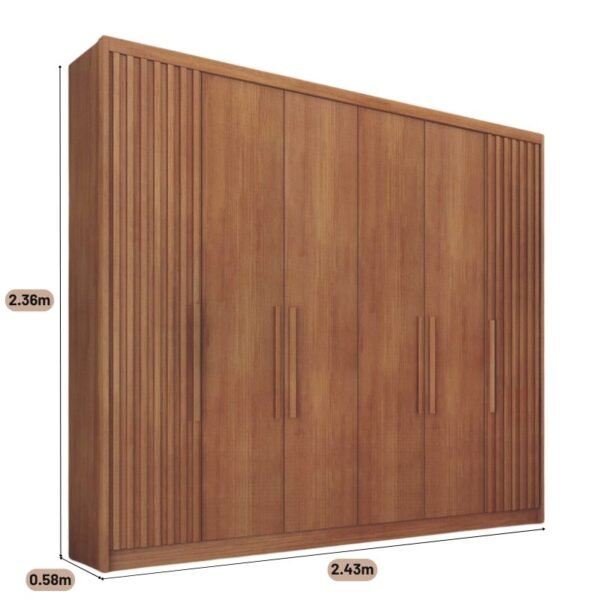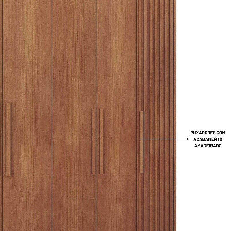 Roupeiro Santoro Cumaru 6 Portas 6 Gavetas C/Detalhe Ripado 100% MDF Larg. 2.43m Novo Horizonte