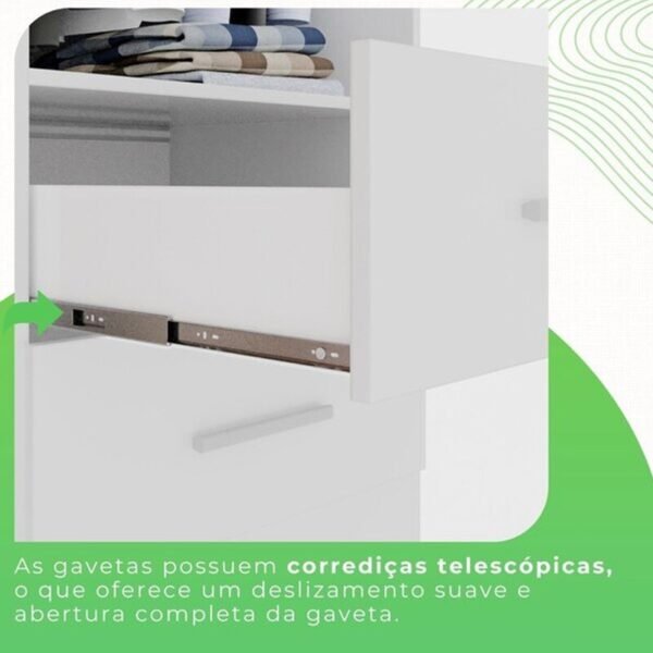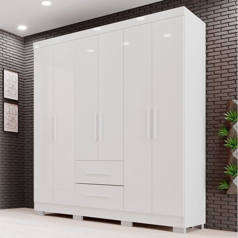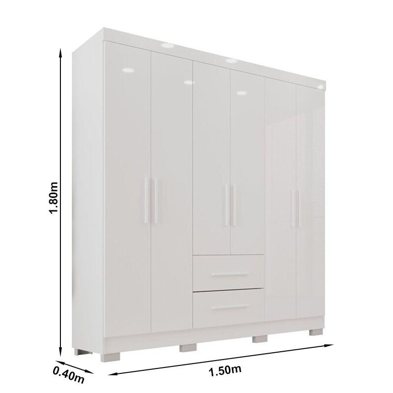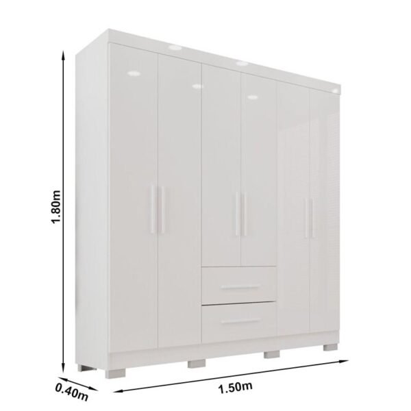 3{%%}Descrição{%%}Roupeiro Solteiro Estrela Branco 6 Portas 2 Gavetas C/Pés Larg. 1.50m – Sallêto