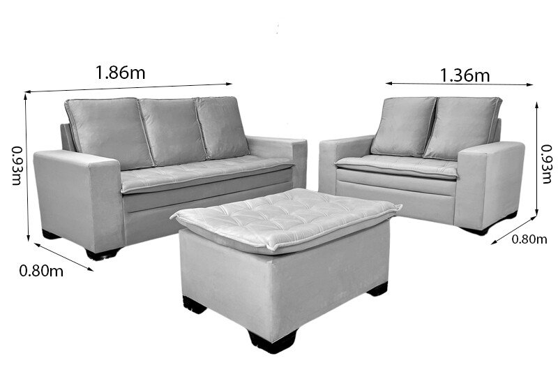 3{%%}Descrição{%%}Sofá 3 e 2 lugares França com Puff Veludo Azul A16