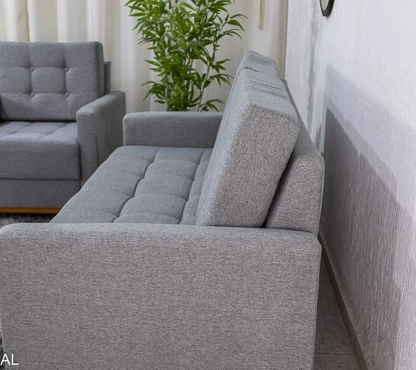 3{%%}Descrição{%%}Sofá Áustria 3 Lugares + Poltrona Áustria Linho Cinza A59