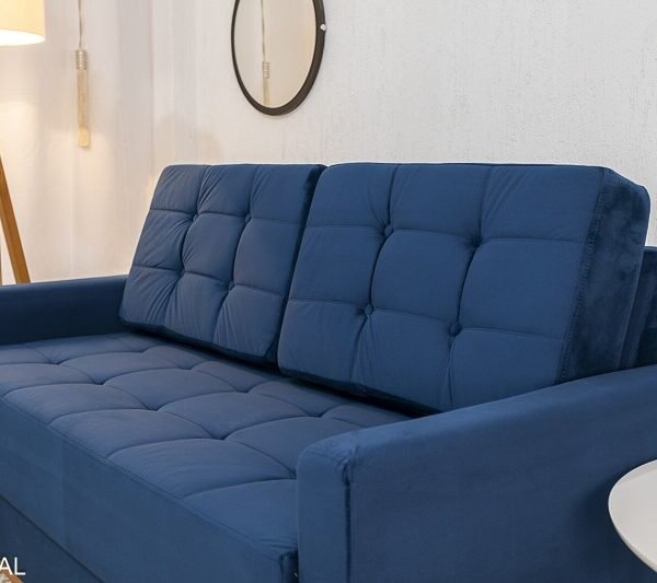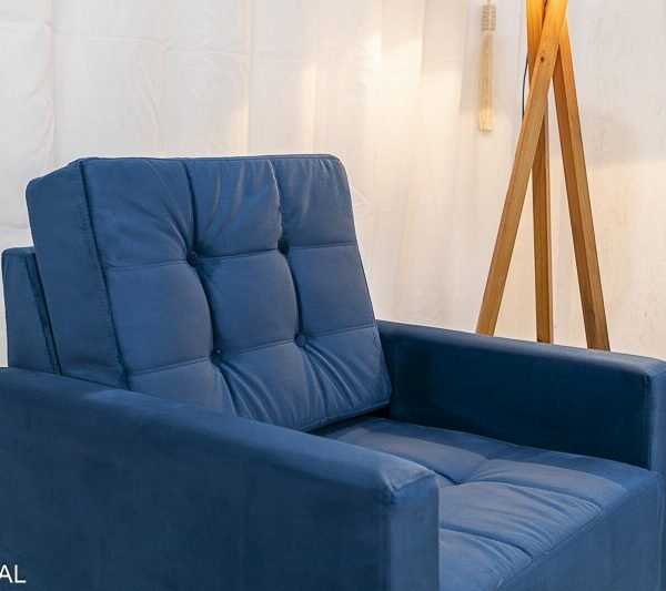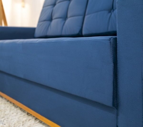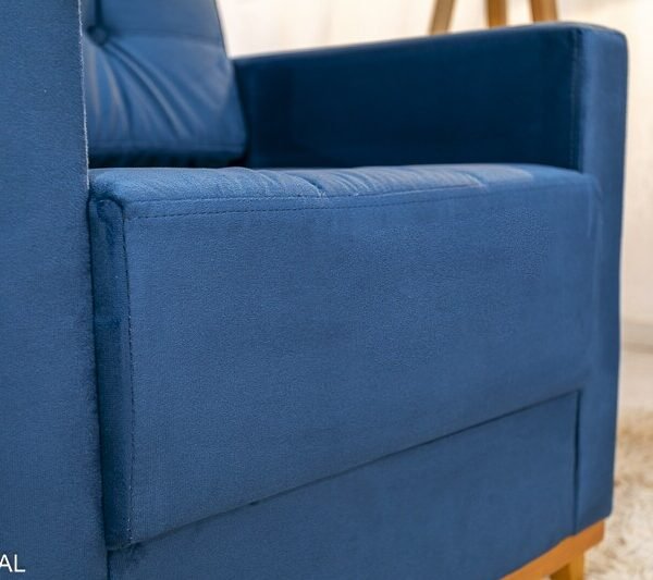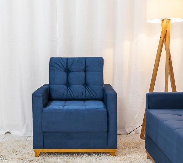 3{%%}Descrição{%%}Sofá Áustria 3 Lugares + Poltrona Áustria Veludo Azul A16