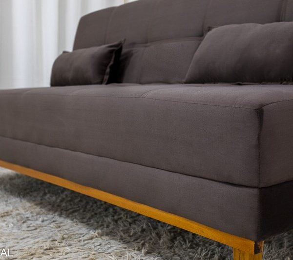 3{%%}Descrição#Como usar{%%}Sofá Cama Madrid Veludo Marrom 2263 Larg. 1.80m – Molas Bonnel