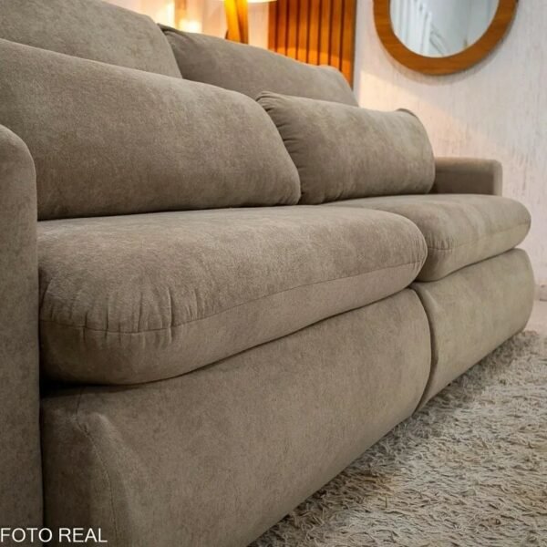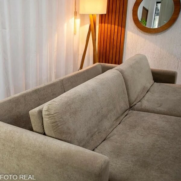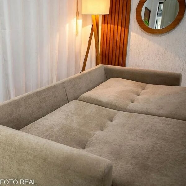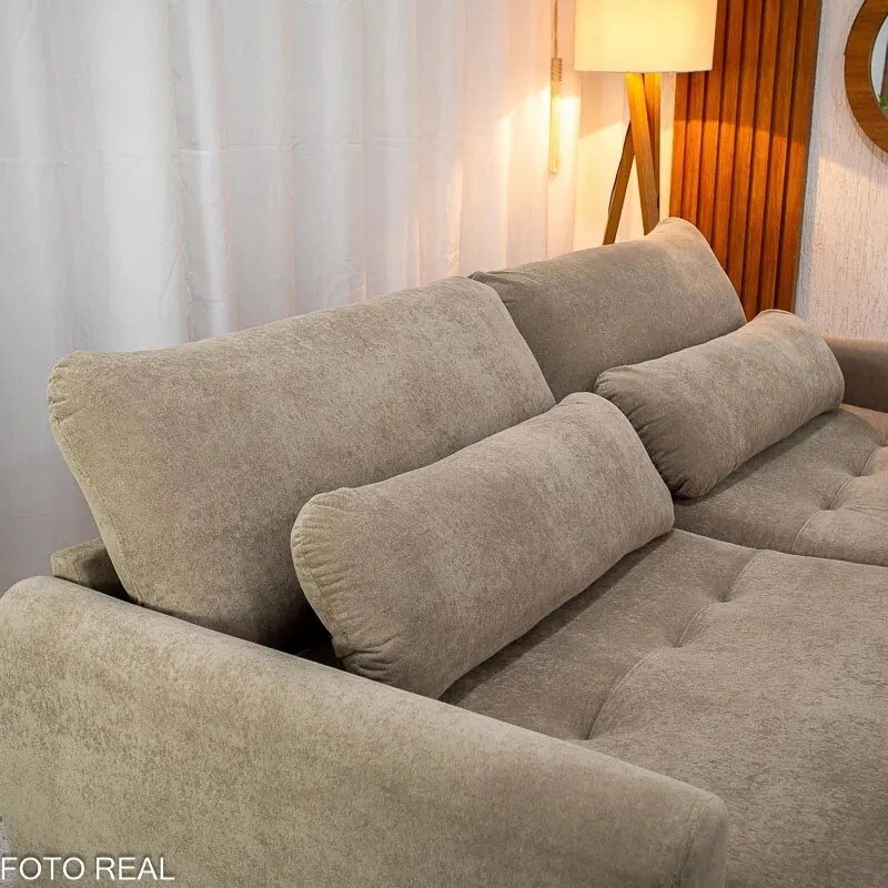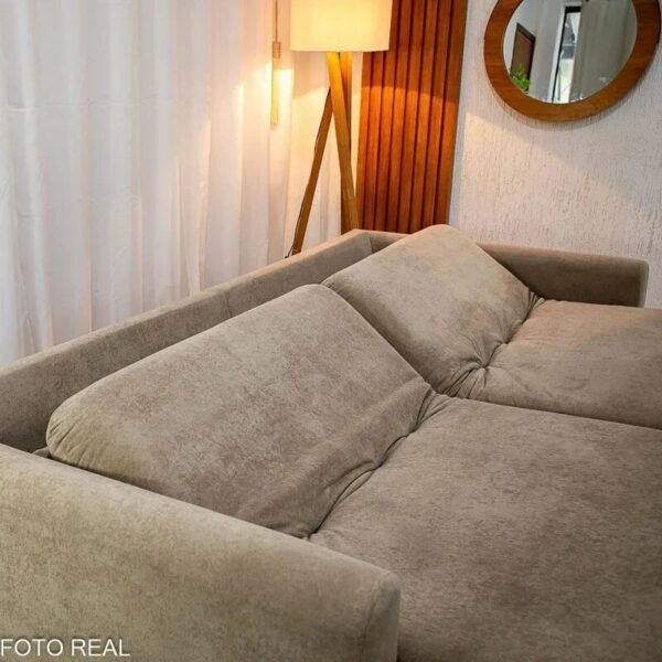 Esse modelo une conforto, praticidade e um visual elegante em um único produto. Com 2,30 metros de largura, ele acomoda bem até 4 pessoas e ainda vira uma cama espaçosa de 2,05×1,45m. ideal para receber visitas ou relaxar assistindo TV. Seu assento retrátil com pillow de 17cm e molas bonnel garante conforto mesmo por longas horas, e o encosto reclinável com almofadas soltas oferece aquele apoio extra para o corpo.