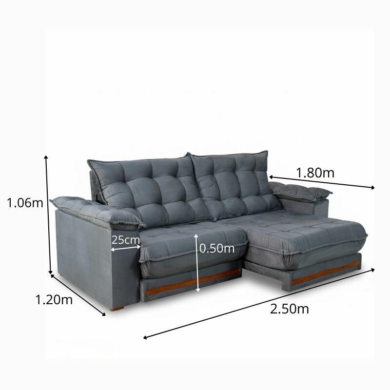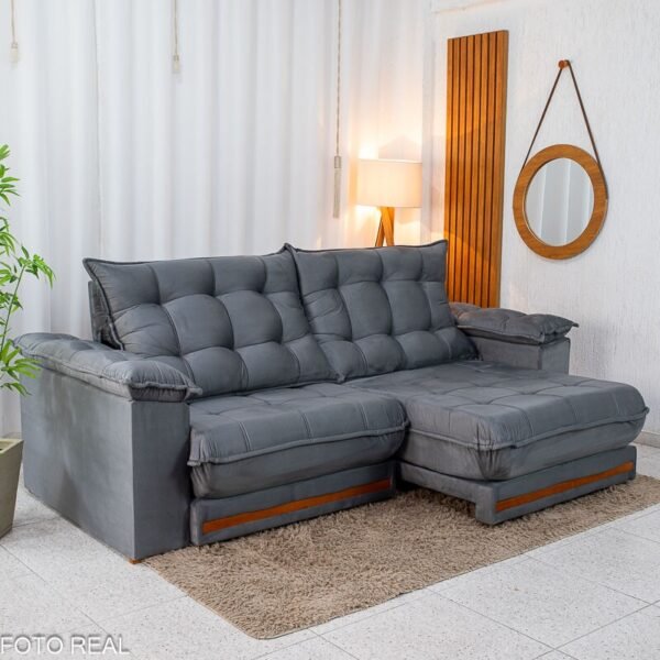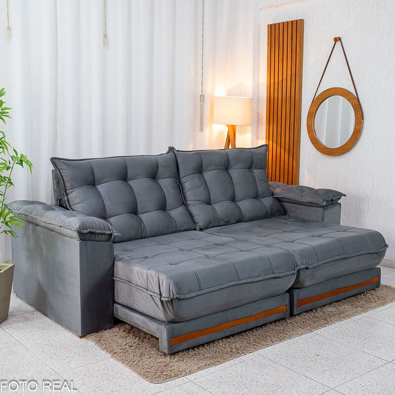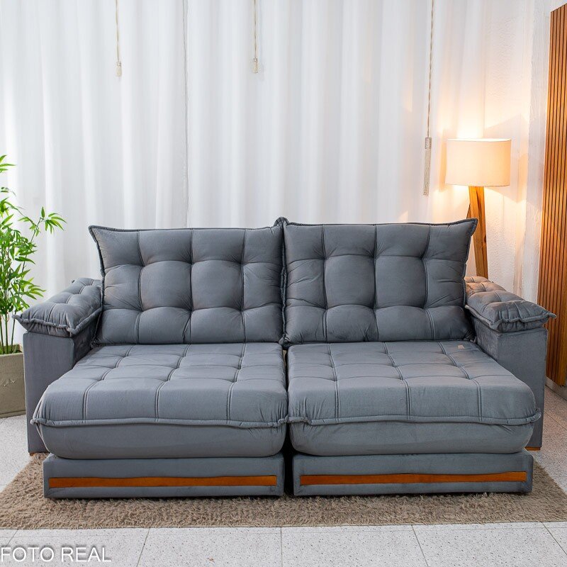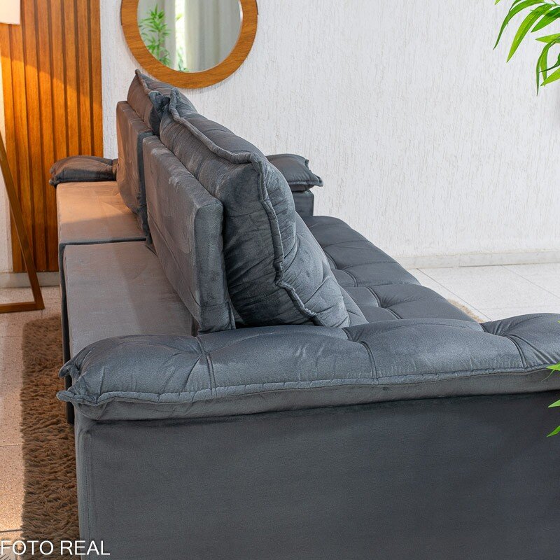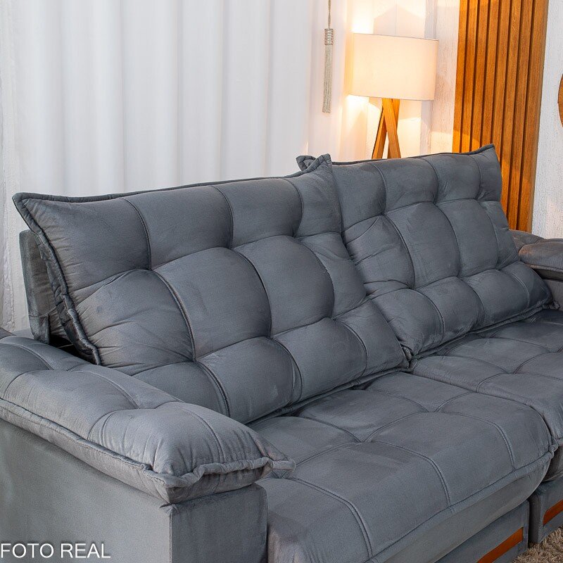 3{%%}Descrição#Benéficos das molas ensacadas{%%}Sofá Retrátil Reclinável Barcelona 2.50m Veludo Chumbo 330 – D33 e Molas Ensacadas