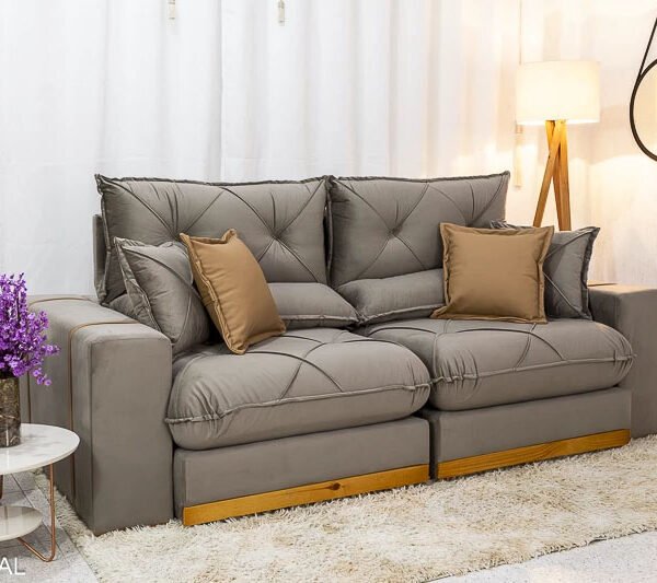 3{%%}Descrição#Benéficos das molas ensacadas{%%}Sofá Retrátil Reclinável Gran Bello 2.00m Veludo Capuccino – Molas Ensacadas
