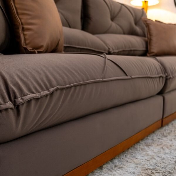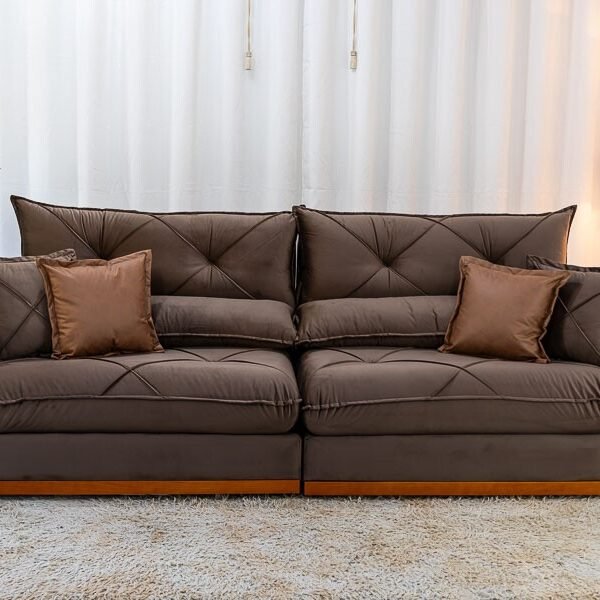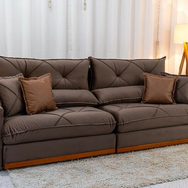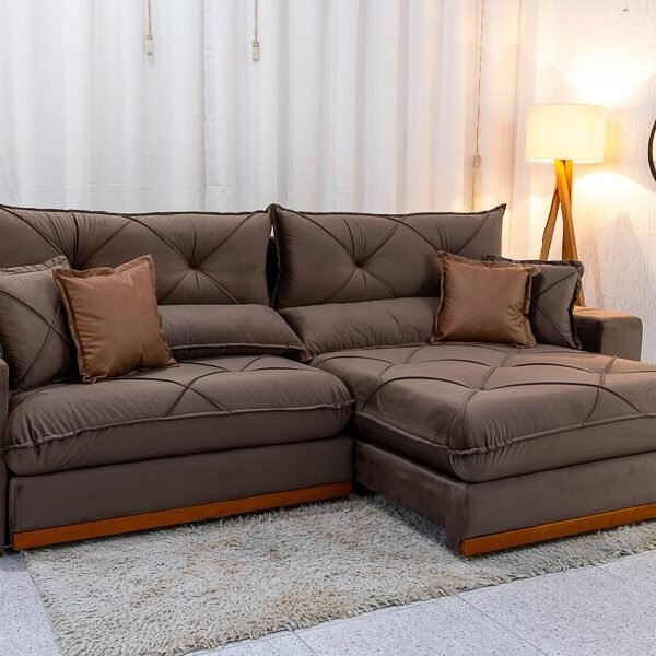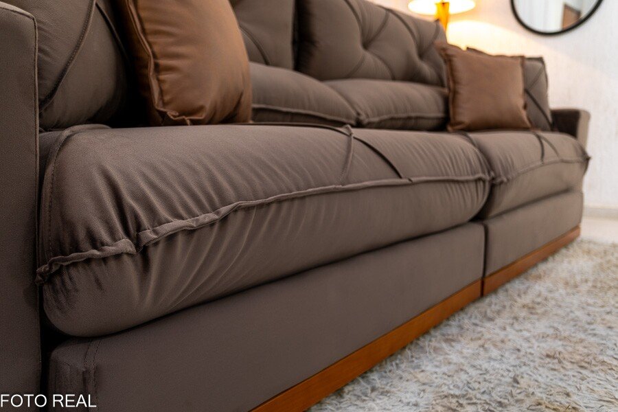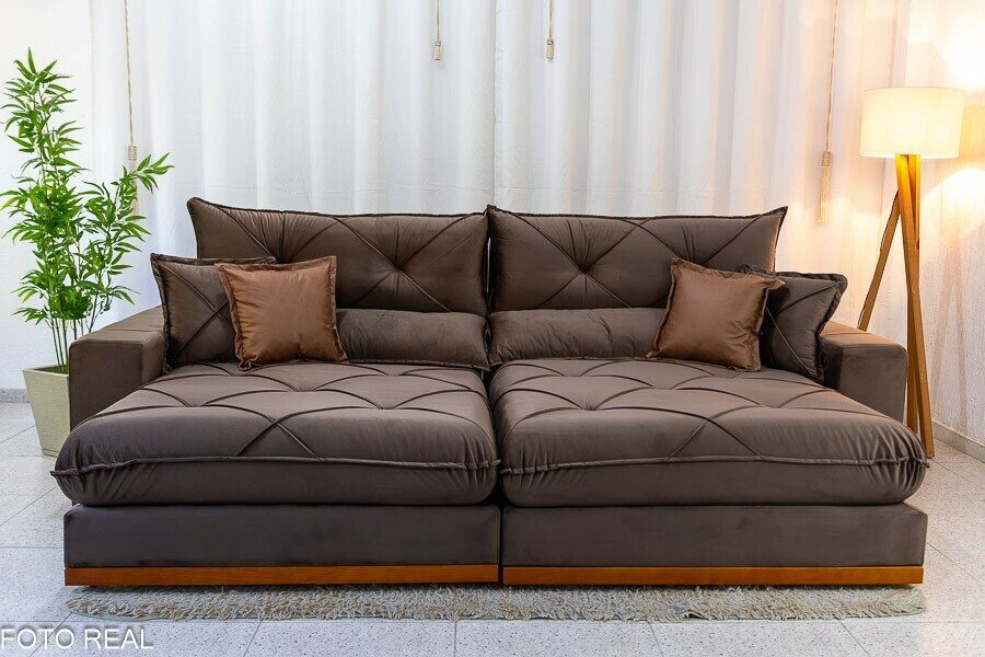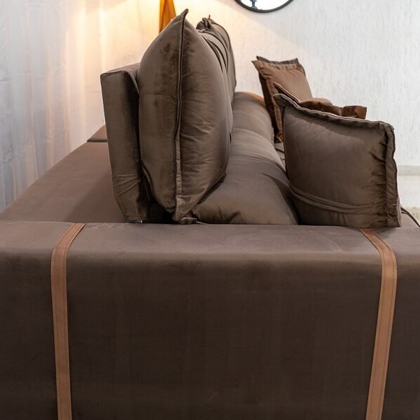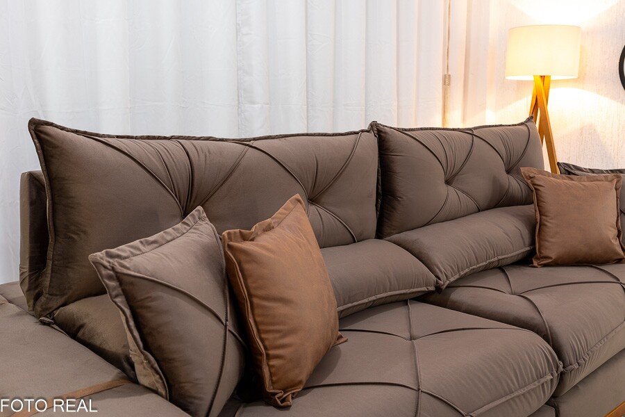 3{%%}Descrição#Benefícios das molas ensacadas{%%}Sofá Retrátil Reclinável Gran Bello 2.90m Veludo Marrom – Molas Ensacadas