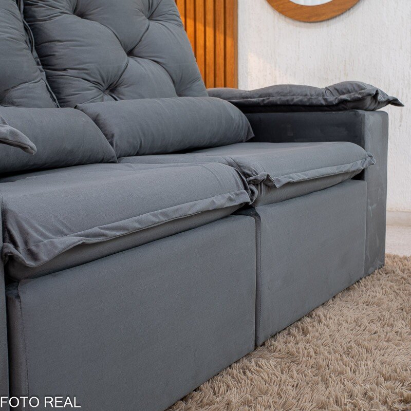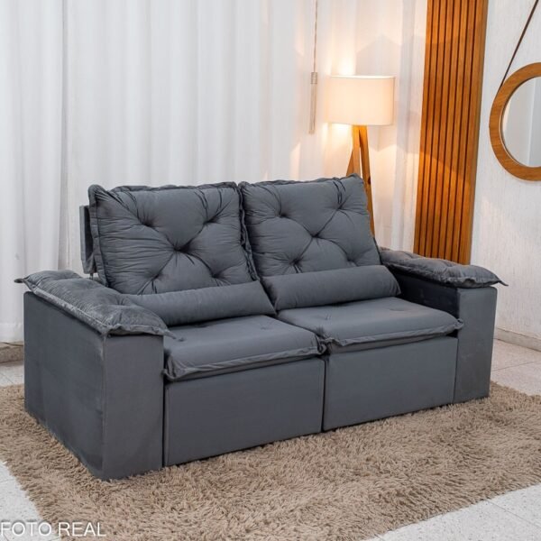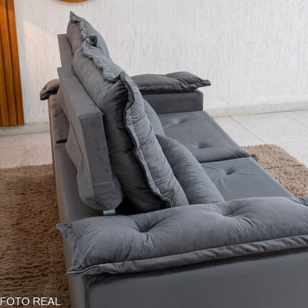 3{%%}Descrição{%%}Sofá Retrátil Reclinável Master 2.00m Veludo Cinza – Sem Caixa