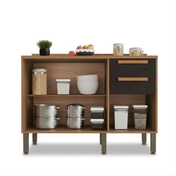 Balcão Flórida Larg. 1.20m Cinamomo/Preto 3 Portas 2 Gavetas – Sallêto