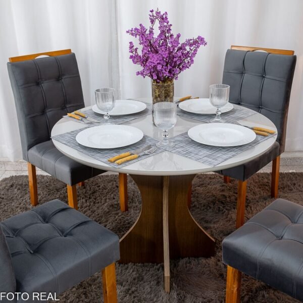 Mesa de Jantar Flipp Redonda 90cm Off White 4 Cad. Sol Assento Veludo Bronze – Viero