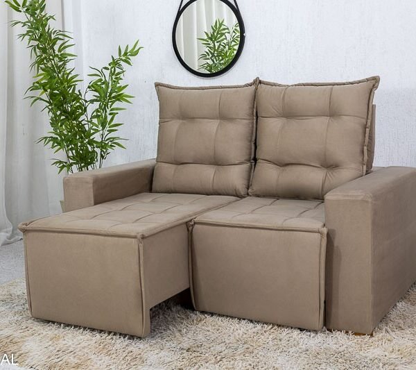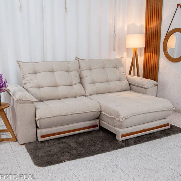 Sofá Retrátil Reclinável Barcelona 2.30m Linho Bege 459 – D33 e Molas Ensacadas Pocket